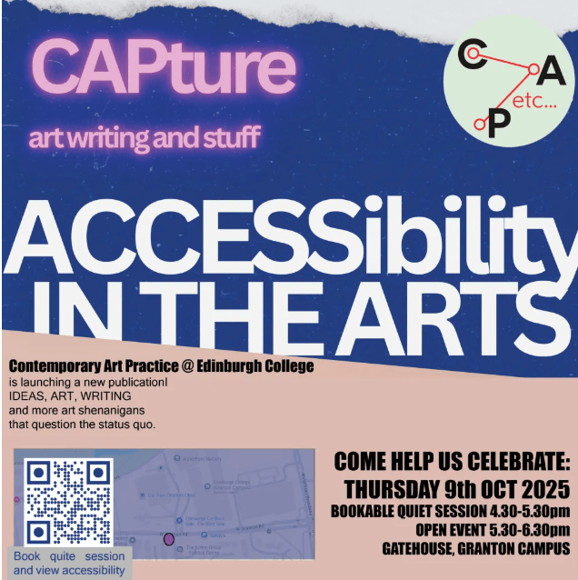 We are delight to launch the very first issue of CAPture art etc… at Edinburgh College’s Gatehouse and overwhelmed by the generosity and talent of the contributions from artist within and beyond Edinburgh College. Huge thanks to everyone who came along to support! It meant the world to have you there for the launch of this very special first issue!